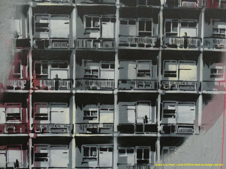 Jana JS ont peint cette fresque dans le cadre de leur exposition à la galerie Knafo intitulée « De la profondeur des sentiments » (clichés du 23/09/2017).