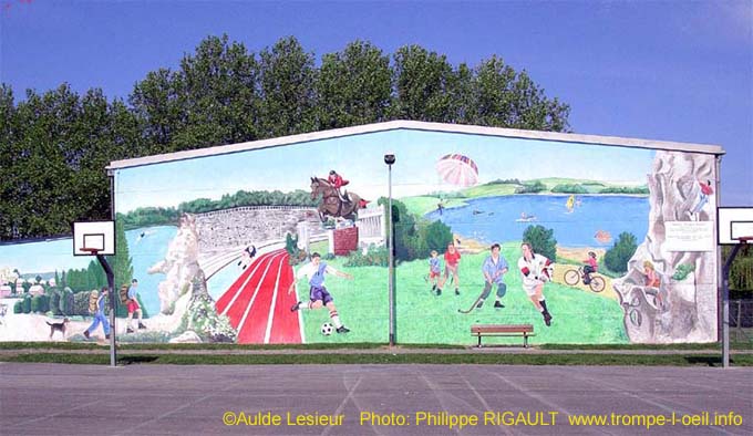 "L'Espace Argentine" est un centre d'activités sportives, culturelles et de loisirs dans un quartier populaire de Beauvais. Sous la direction d'une artiste, Aulde Lesieur, 14 femmes en C.E.S. (contrat emploi solidarité) ont décoré tous les murs de fresques évoquant les activités de l'Espace.
