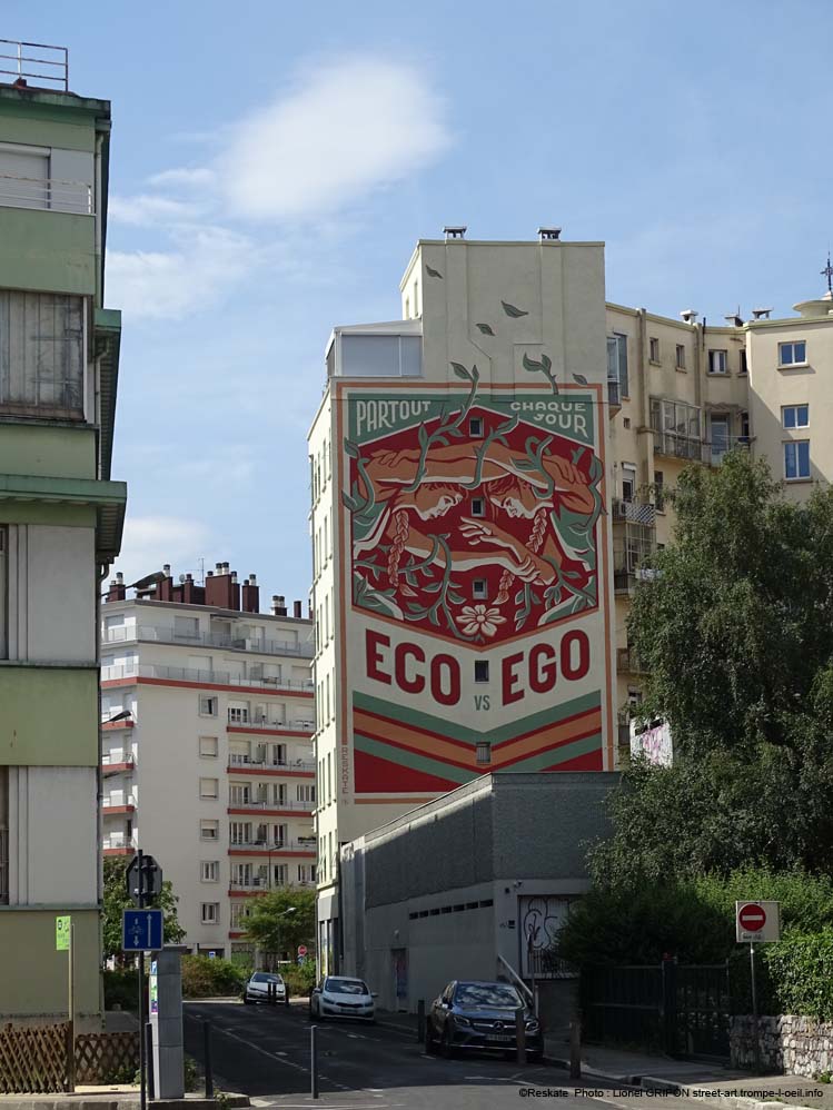 Ils décrivent leur fresque avec ces mots « L'environnement est également gravement endommagé en raison du consumérisme. Cette étape était une façon de faire passer le bien-être commun avant l'envie personnelle et la commodité. Mais la publicité ne disparaît pas, elle s'infiltre partout, comme maintenant dans nos téléphones portables. C'est donc une bataille interne à laquelle nous devons tous faire face. Nous sommes tous victimes de la publicité et des bourreaux de la nature (clichés Août 2020).