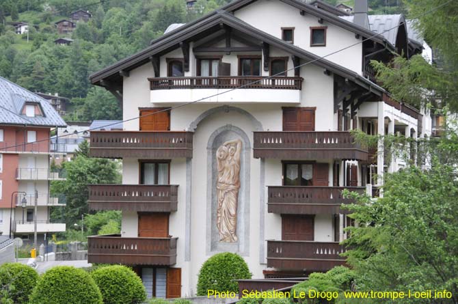 Au beau milieu des balcons de ce chalet de montagne, cette superbe femme, cette gigantesque statue est en train de déverser le contenu de sa jarre (clichés du 21/05/2009).