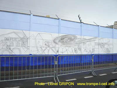 Si vous passez dans la commune, faite le détour, c'est vraiment imposant et vraiment très agréable à voir. Par la magie de la peinture, cet affreux mur en panneaux de béton du site ERDF, est devenu un endroit où l'on peut se promener le dimanche.