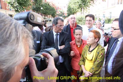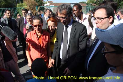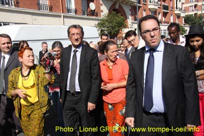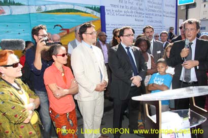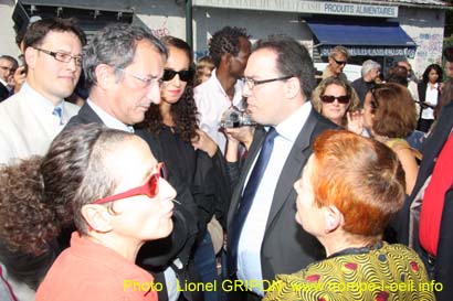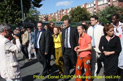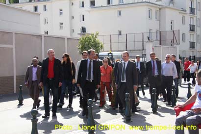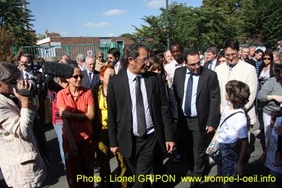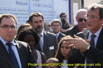 Au centre le Ministre de la Ville, M François LAMY, accompagné de Sébastien PIETRASANTA  Député Maire d'Asnières sur Seine.
