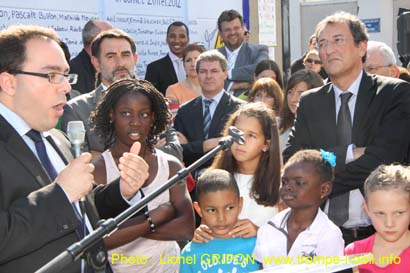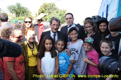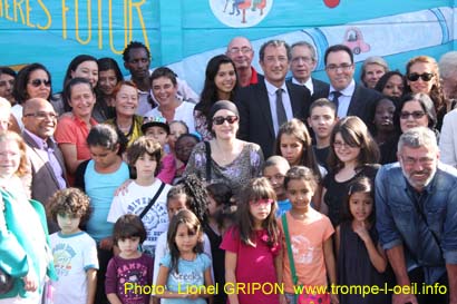Enfants, Ministre, Député-Maire et Artistes sur la même photo.