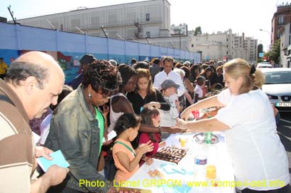Le ministre est parti très rapidement, emploi du temps oblige, les habitants du quartier découvre les plaisirs d'un buffet en plein air, au beau milieu de leur rue.