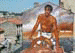 Cette fresque représente une affiche d’un film culte avec Alain Delon. « Plein Soleil », de René Clément (mars 1960). Alain Delon y est tout bronzé au commande de son bateau.(Fresque murales).