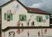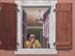 Cette animation de façade, à Saint-Genis Pouilly avec fausses porte et fenêtres, nous permet de faire un clin d’œil à notre ami Coluche (du haut de sa fenêtre). .(Trompe-l'oeil).