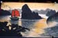 Pour redonner vie à une rue connue clermontoise, l’artiste a reproduit sur la façade d’un restaurant vietnamien la baie d’ Halong, avec ces pitons rocheux, la barque en bambou