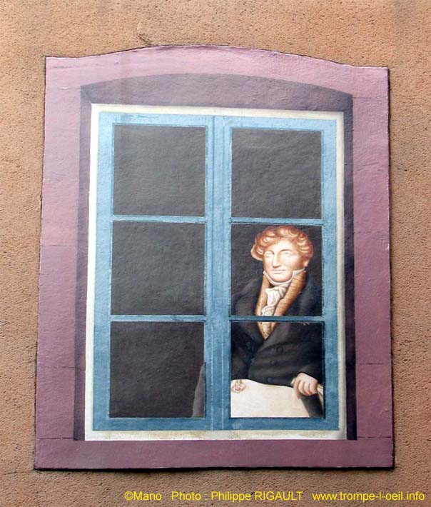 A 63 ans, il n'a pas survécu à une épidémie de choléra. Sa ville natale lui rend hommage avec cette fresque donnant une idée de ce que fût son laboratoire. Il s’agit en fait de fausses fenêtres, dont certaines obstruent des vraies, et qui ont été collées sur le mur, un trompe-l’œil minimaliste ou une fresque amovible_le ? (Cliché du 6 juin 2007)