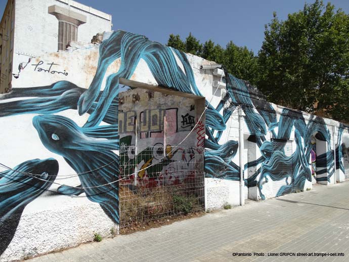 Pantonio est portugais, il vit à Lisbonne. Son style est facilement identifiable par la dominance des couleurs bleues et noires, par la répétition des thèmes dès lors que la fresque est de taille importante.