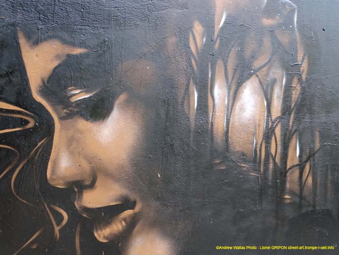 - Andrew Wallas un street-artist né en 1970 à la Martinique, qui habite dans le Wisconsin (USA). C’est un artiste autodidacte et polyvalent influencé dès son plus jeune âge par la culture américaine hip-hop. Dans les années quatre-vingt-dix, il décide de se consacrer exclusivement à la peinture. Il est aussi à l’aise avec un pinceau qu’avec une bombe aerosol. Il cherche constamment l’harmonie à travers les formes, les volumes, les ombres et les lumières.