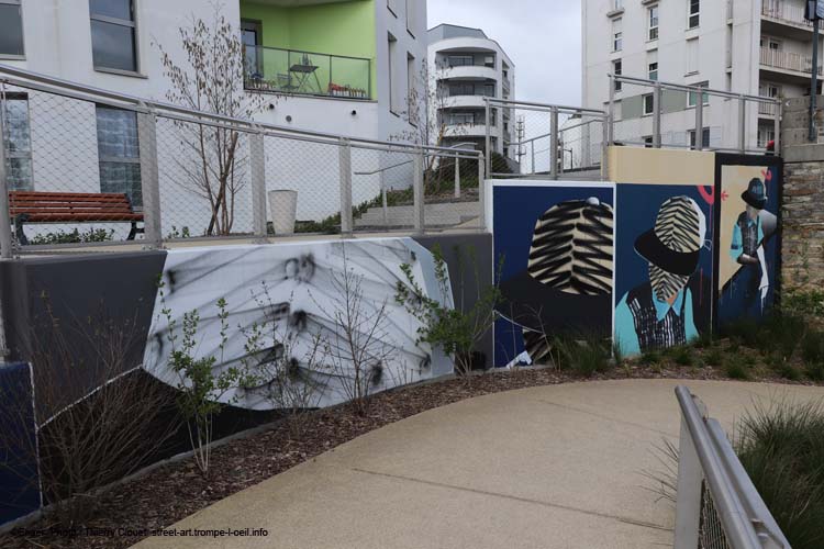 Ici il nous propose une fresque en 3 tableaux, un homme portant une casquette, sous trois points de vue différents (clichés du 03/03/2020)