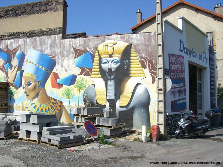 Keymi ((Mickey en verlan) est un artiste né à Paris en 1973 qui vit et travaille à Clermont-ferrand. Ses graffs regroupent deux catégories : les personnages et les lettrages. Depuis quelques années, il recouvre les murs gris de Clermont Ferrand. Réalisés d’abord sans autorisation, ses graffs se sont acquis la bienveillance des administrations, les services municipaux ayant pour consigne de ne pas les effacer. Il s’intéresse à l’univers de la bande dessinée et du manga tout en restant sensible à l’esthétisme des peintures classiques de paysages, des fresques baroques et rococo des églises, de la peinture du 20ème siècle et de l’iconographie du monde du custom et du tatouage.