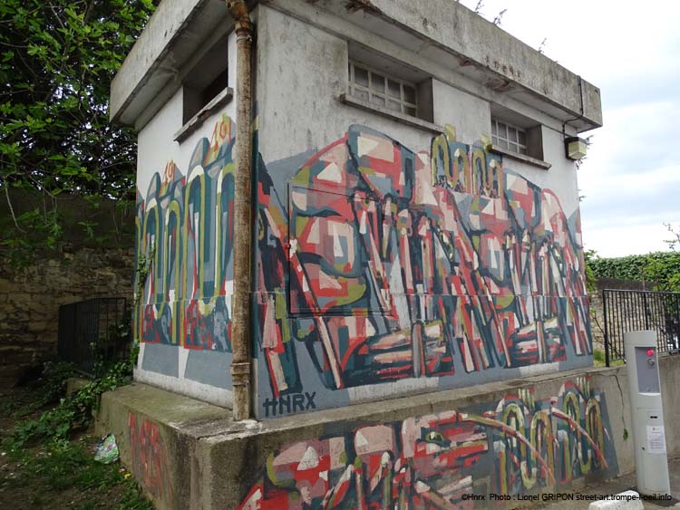Ce jeune artiste autrichien, HNRX , est originaire d’Innsbruck. Il peint des motifs géants, des saucisses, des bananes ou des épingles à linge dans un environnement tout en irrégularité et en aspérité, conférant à l’œuvre un aspect unique. Il décrit son style de cette manière « Parce que le monde est beau, bienvenue dans le monde des objets du quotidien ».