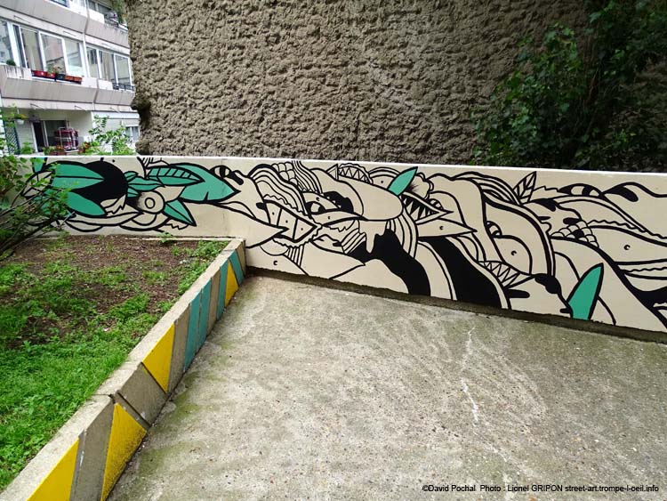 David Pochal est avant tout un photographe de mode. Visiblement à ses heures il peint aussi, mais c’est la première fois que je croise une fresque de lui.