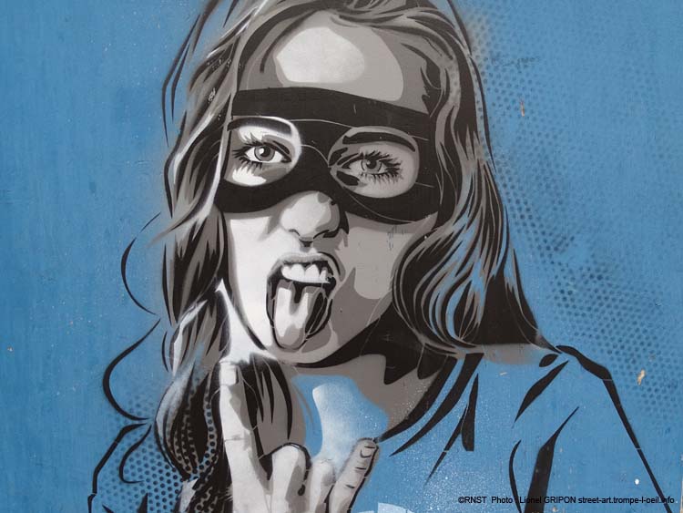 RNST (on peut prononcer Ernest en fait) est un street-artist dijonnais né en 1972 que l’on croise dans nos rue depuis 1990. Il aime peindre des personnages masqués, enfants ou adultes. Il s’amuse avec l’art urbain sous diverses formes, graffiti, affiches, collages, pochoirs. Le discours et l’œuvre de RNST sont imprégnés de deux constantes : provocation et romantisme. L’actualité et l’espace public ne doivent pas nous échapper, c’est bien là que l’artiste vient se positionner. Le résultat est parfois violent, mais tellement poétique.