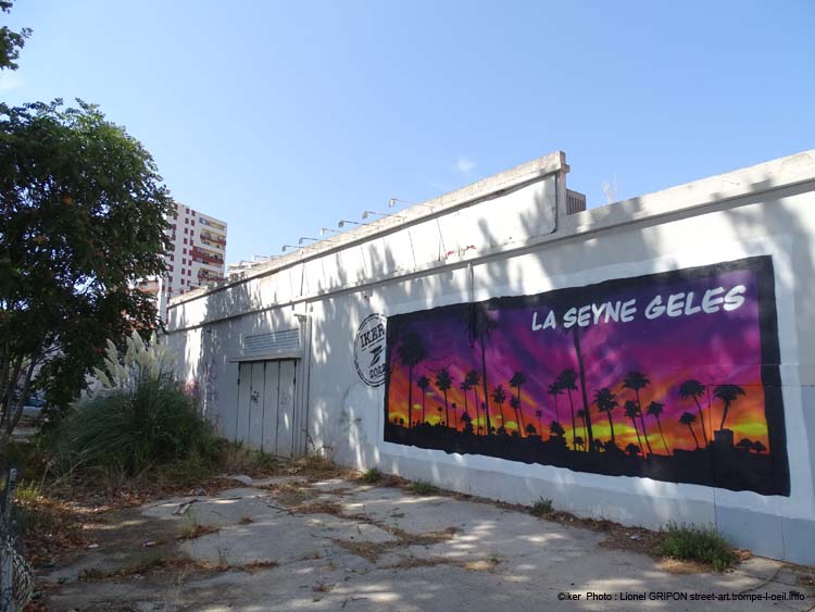 Ici il nous propose une carte postale de la ville de La Seyne sur mer, avec un magnifique ciel lors d’un couché du soleil. On peut également voir de nombreux palmiers (clichés Août 2022).