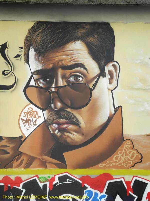 Le portrait de l’écrivain est du à Noé2 (Noé two). Il a été accompagné dans son travail par Brok, Dhéa, Seyb, Smug et Epok, tous graffeurs venus de différents horizons. Un joli travail qui s’est déroulé début juillet 2012 (clichés 29 octobre 2013).