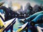 A gauche on retrouve la marque de fabrique de l’artiste MG La Bomba , sa signature, son personnage robotisé. Il a co-réalisé cette fresque avec un autre artiste qui s’appelle Avataar qui a dû réaliser le personnage de droite. Au centre un pont franchit la Seine toute proche (clichés 13/11/2016).