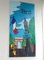 Cette fresque est à la fois une fresque d’enfants et une fresque amovible puisqu’elle a été réalisée sur des panneaux de bois fixés au mur, dans ce passage sous un immeuble de la cité. Il s’agit de huit cartes postales de grandes villes du monde : Londres, Paris, Madrid, Berlin, New-York, Buenos aires, Tokyo et Moscou.