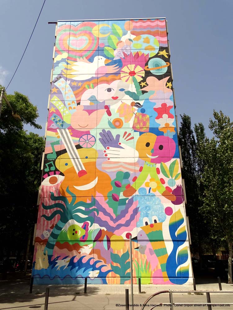 Ils commentent leur fresque avec ces mots : « Cette fresque a vu le jour grâce à la collaboration avec diverses entités du quartier « Barrio de La Mina » et les plus jeunes avec qui nous avons partagé des idées, des rêves et des visions d'avenir pour ce quartier de Barcelone, souvent oubliée ou stigmatisée. Ce projet nous a intéressé particulièrement car Mina a été frappée par le fait qu'il y avait un quartier à son nom lorsqu'elle est arrivée à Barcelone et elle a voulu le connaître. »