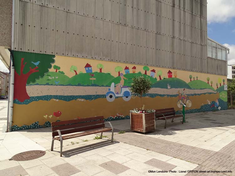 Mon Lendoiro est un artiste multidisciplinaire de Carballo qui a suivi une formation de technicien en arts visuels, graphisme et illustration. Il a développé sa carrière artistique en tant qu'illustrateur, peintre, graphiste et photographe, y compris des œuvres de grand format telles que les peintures murales qu'il a peintes dans son village natal.