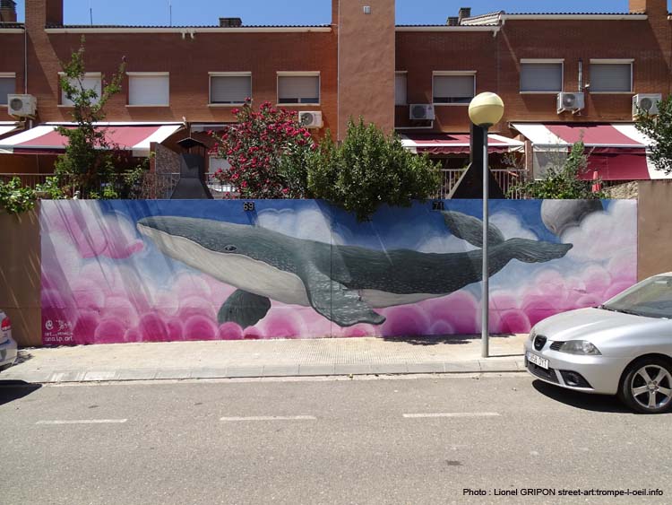 Cette fresque a été peinte par deux étudiants en arts, Ana López & Venecia de Jesús. Ils nous proposent une belle baleine bleue qui semble flotter dans les airs (clichés Août 2024).