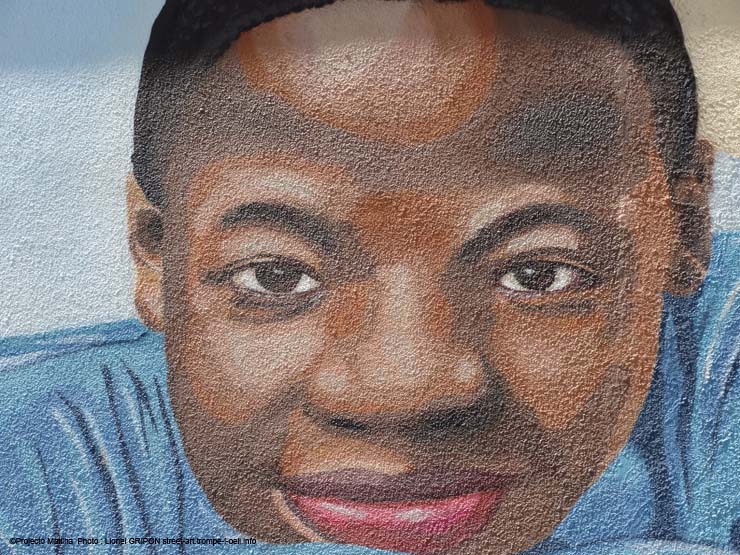 L’univers artistique de « Projecto Matilha » est majoritairement de mettre en scène des animaux, et très souvent des chiens. Ce n’est pas le cas ici, une variante, avec ce jeune garçon qui regarde les passants. La fresque porte le nom de « Future is now » ou « Le futur c’est maintenant » (clichés du 2/08/2018).