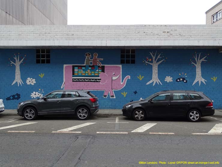 Mon Lendoiro est un artiste multidisciplinaire de Carballo qui a suivi une formation de technicien en arts visuels, graphisme et illustration. Il a développé sa carrière artistique en tant qu'illustrateur, peintre, graphiste et photographe, y compris des œuvres de grand format telles que les peintures murales qu'il a peintes dans son village natal.